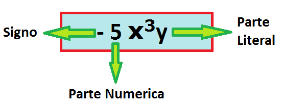 Un monomio consiste en el producto de un numero conocido (coeficiente) por una o varias letras (parte literal)