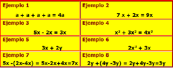 SUMA Y RESTA DE MONOMIOS
